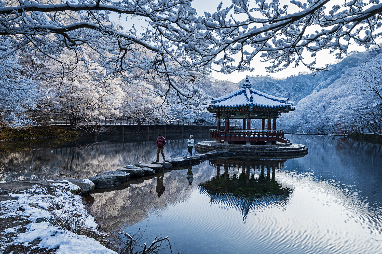 눈이 온 풍경이 아름답습니다.