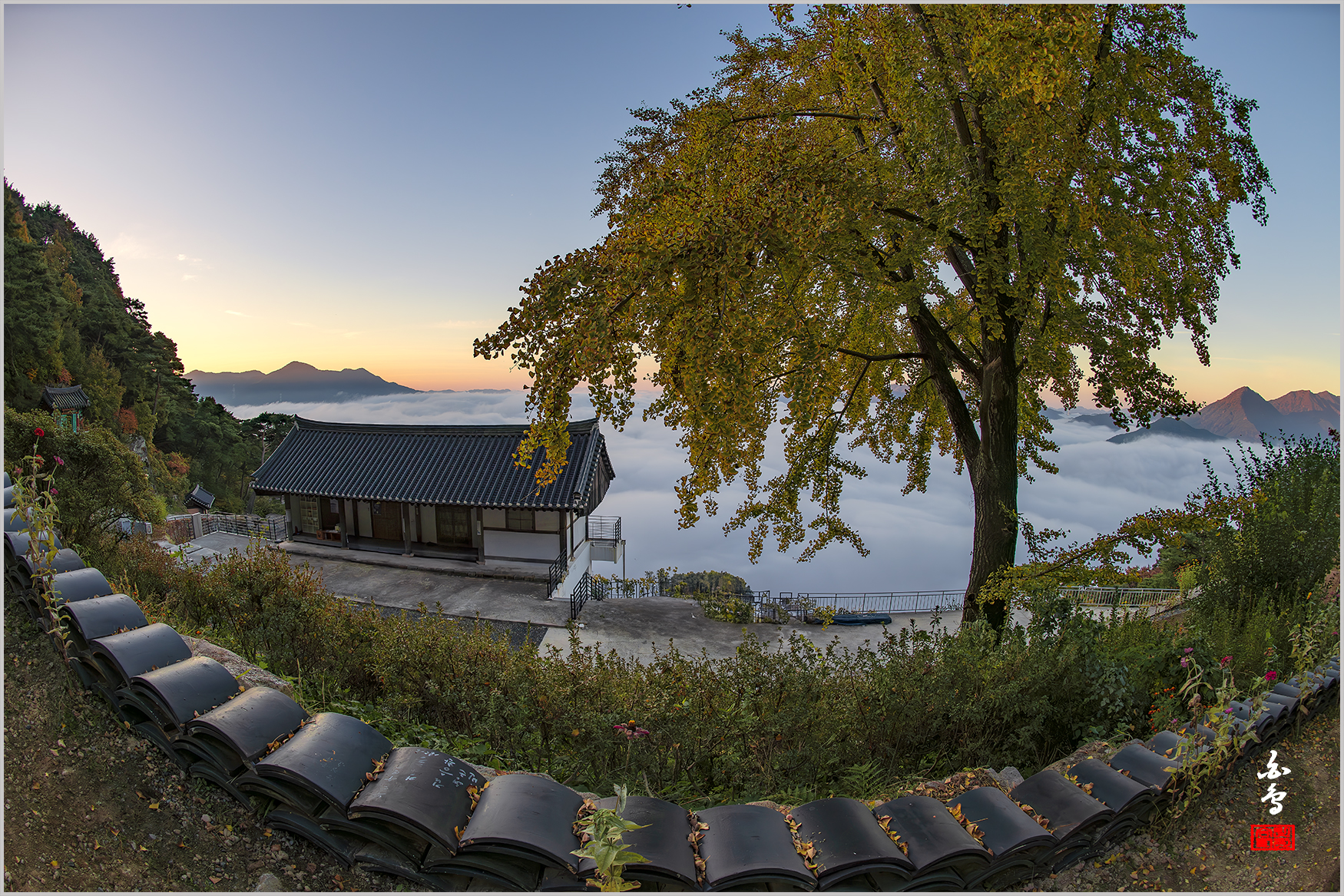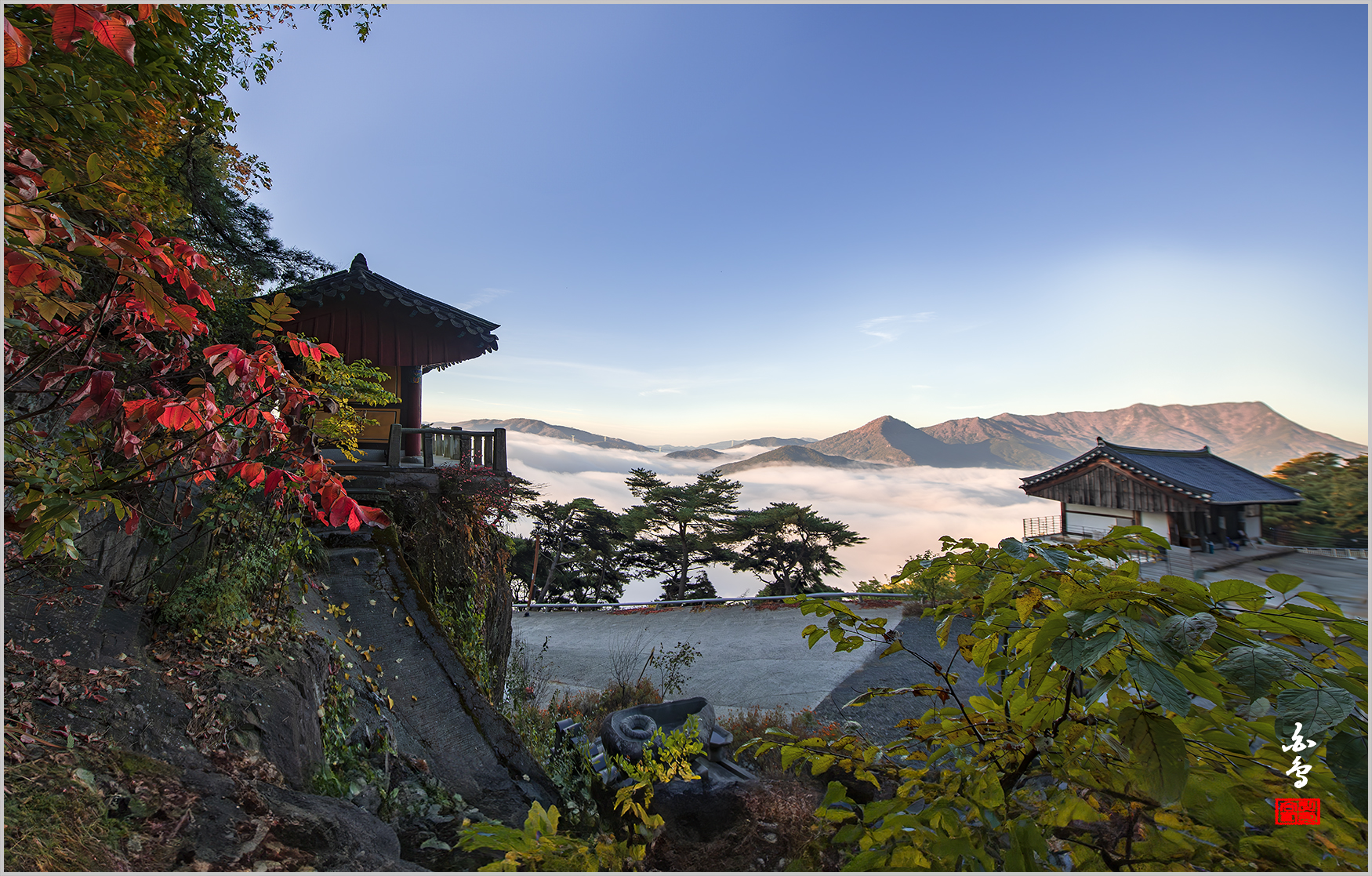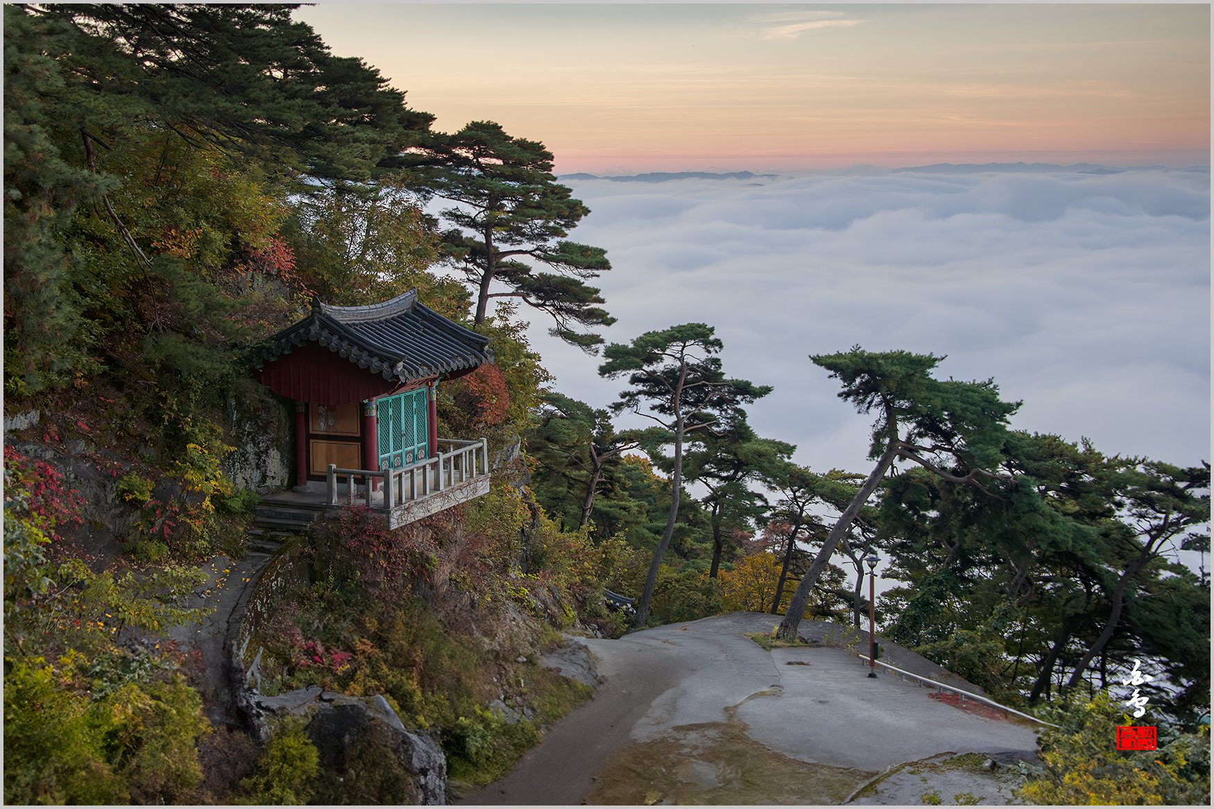 작가의 시선 운해가 드리운 사찰 작품 좋은 느낌 감상 합니다