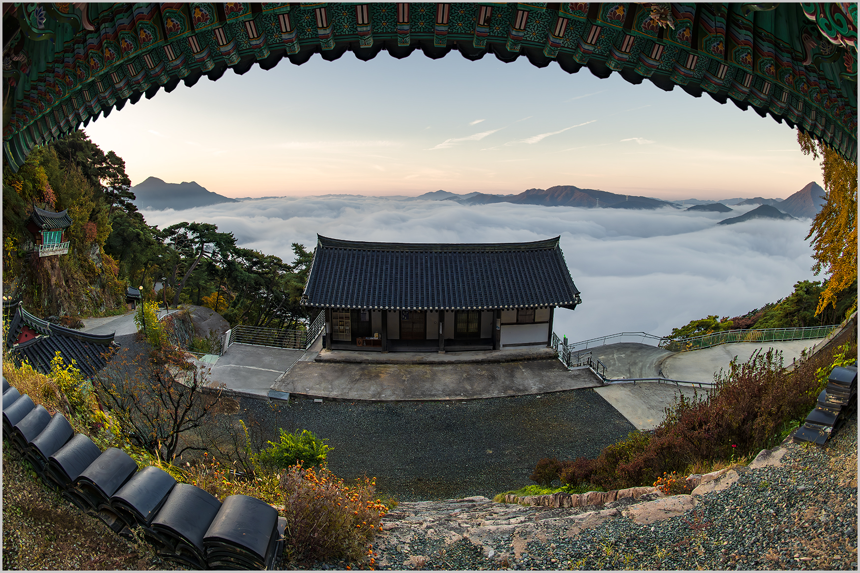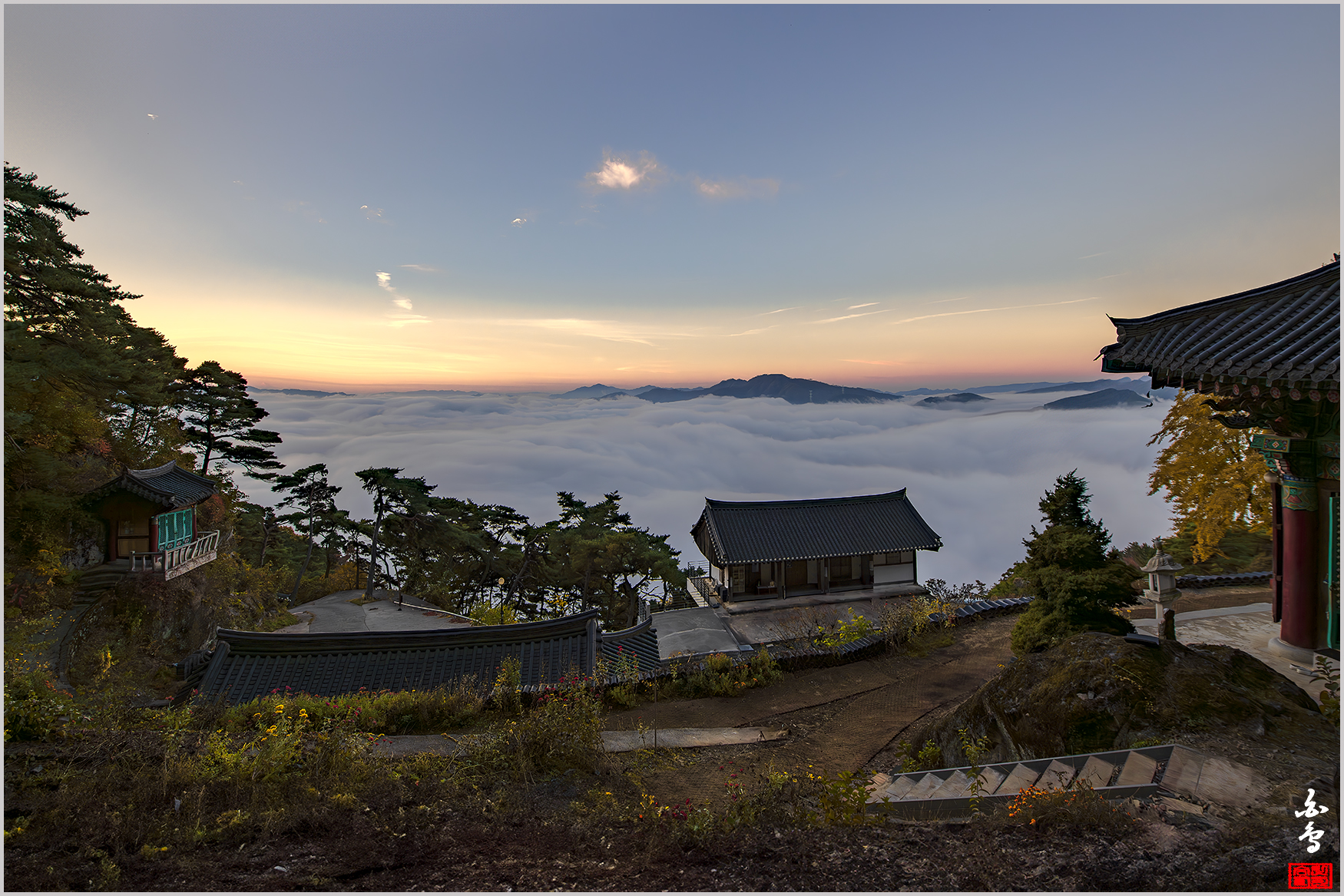 정성을 다하여 담으신 운해가 드리운 사찰