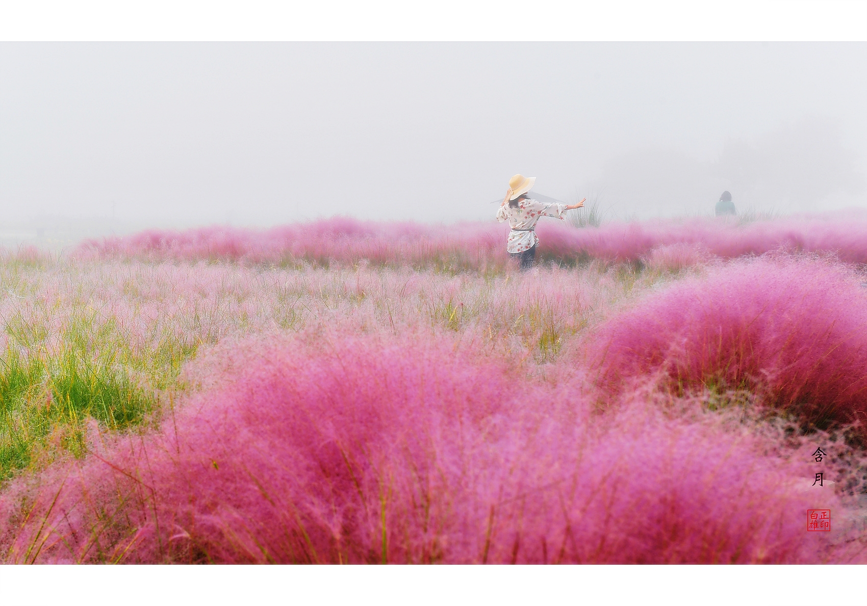 열정으로 담으신 안개 속 핑크뮬리와 여인 작품에 잠시 머물다 갑니다..