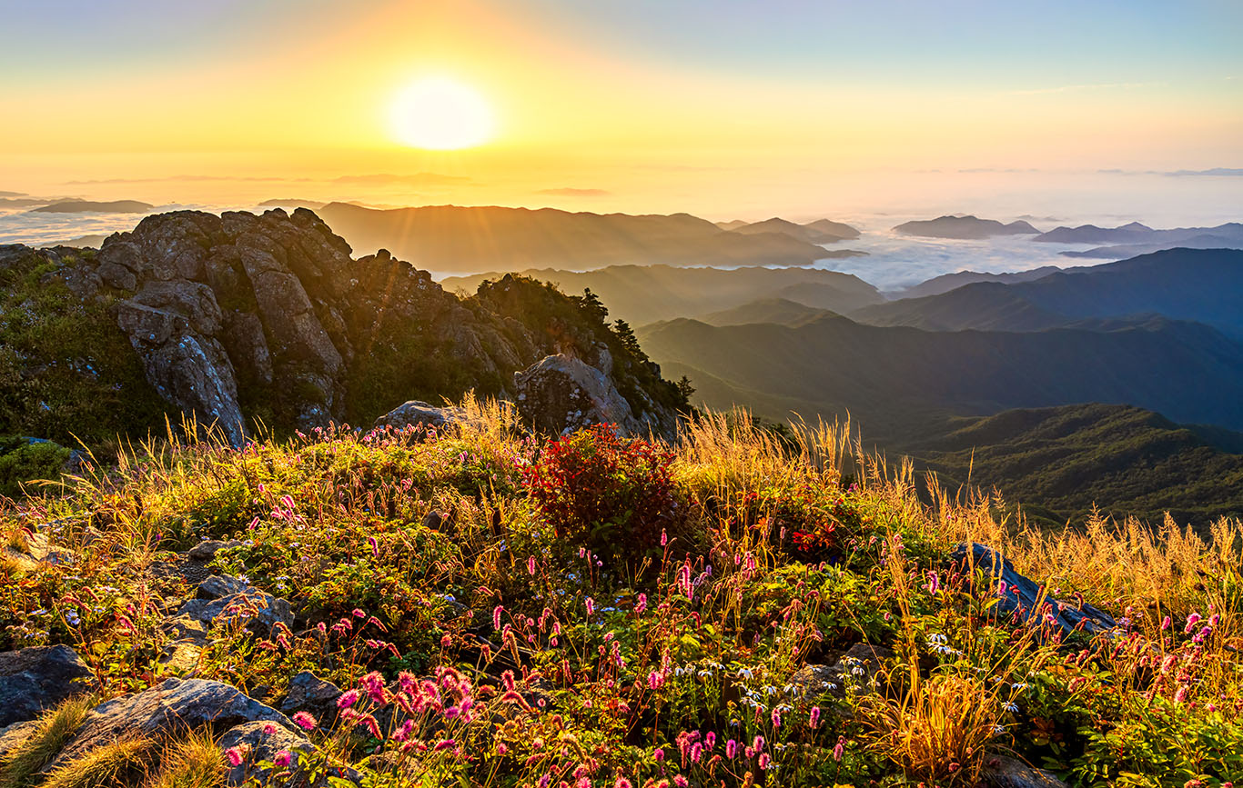 멋있는 천왕봉에 핀 야생화작품
