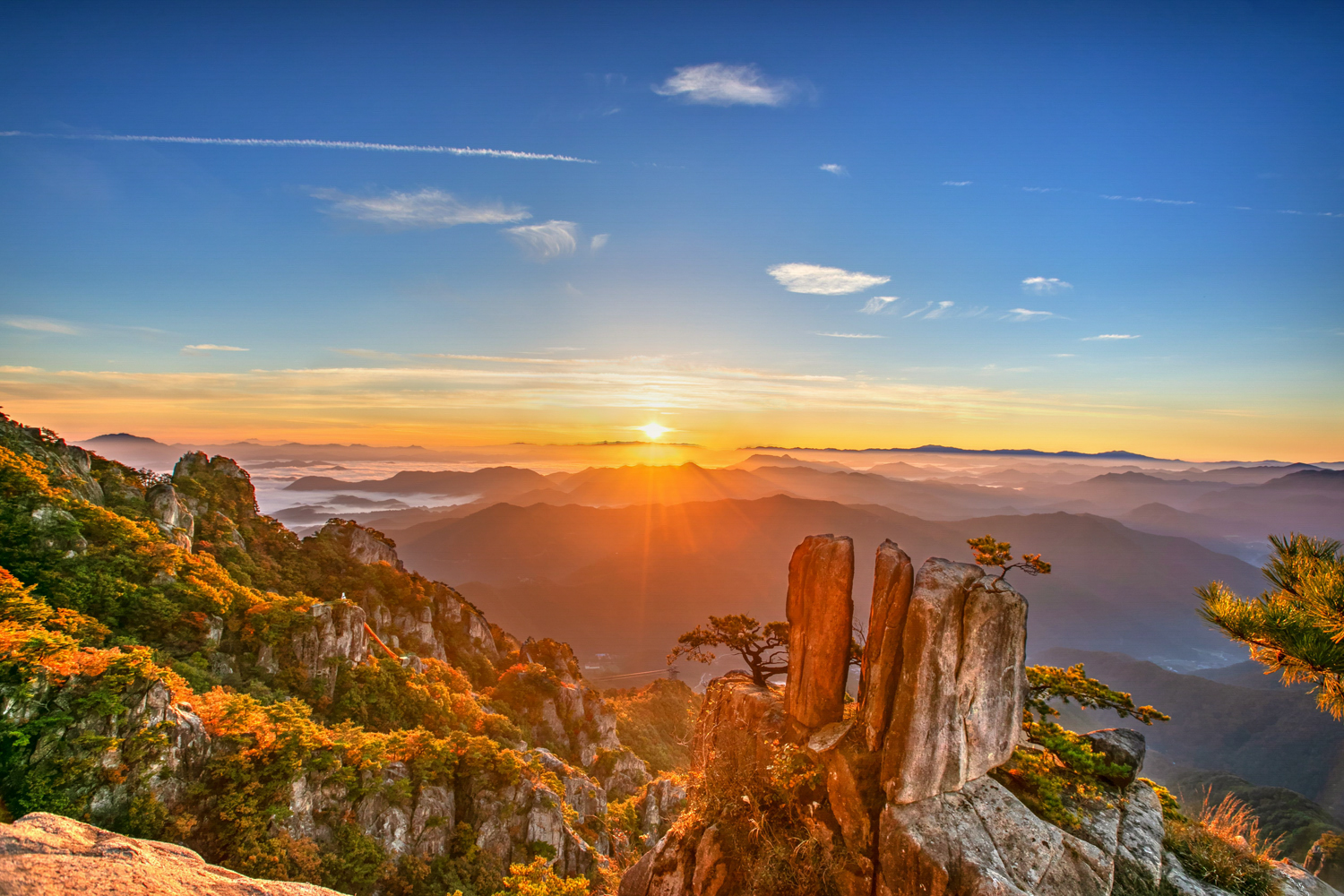 멋있는 삼형제 바위 일출작품