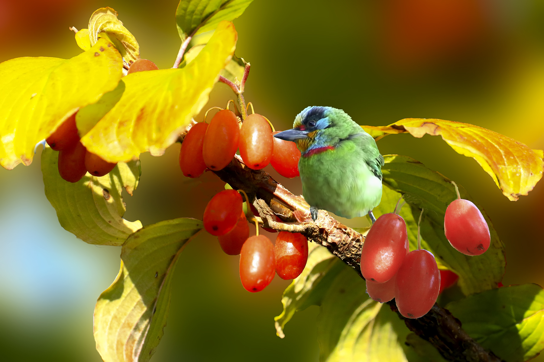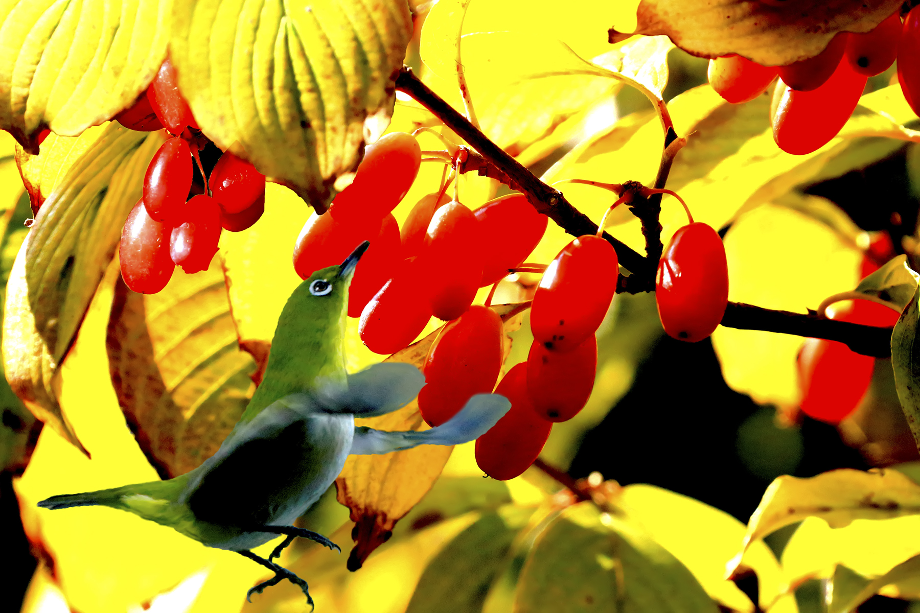 산수유에 들어온 새`