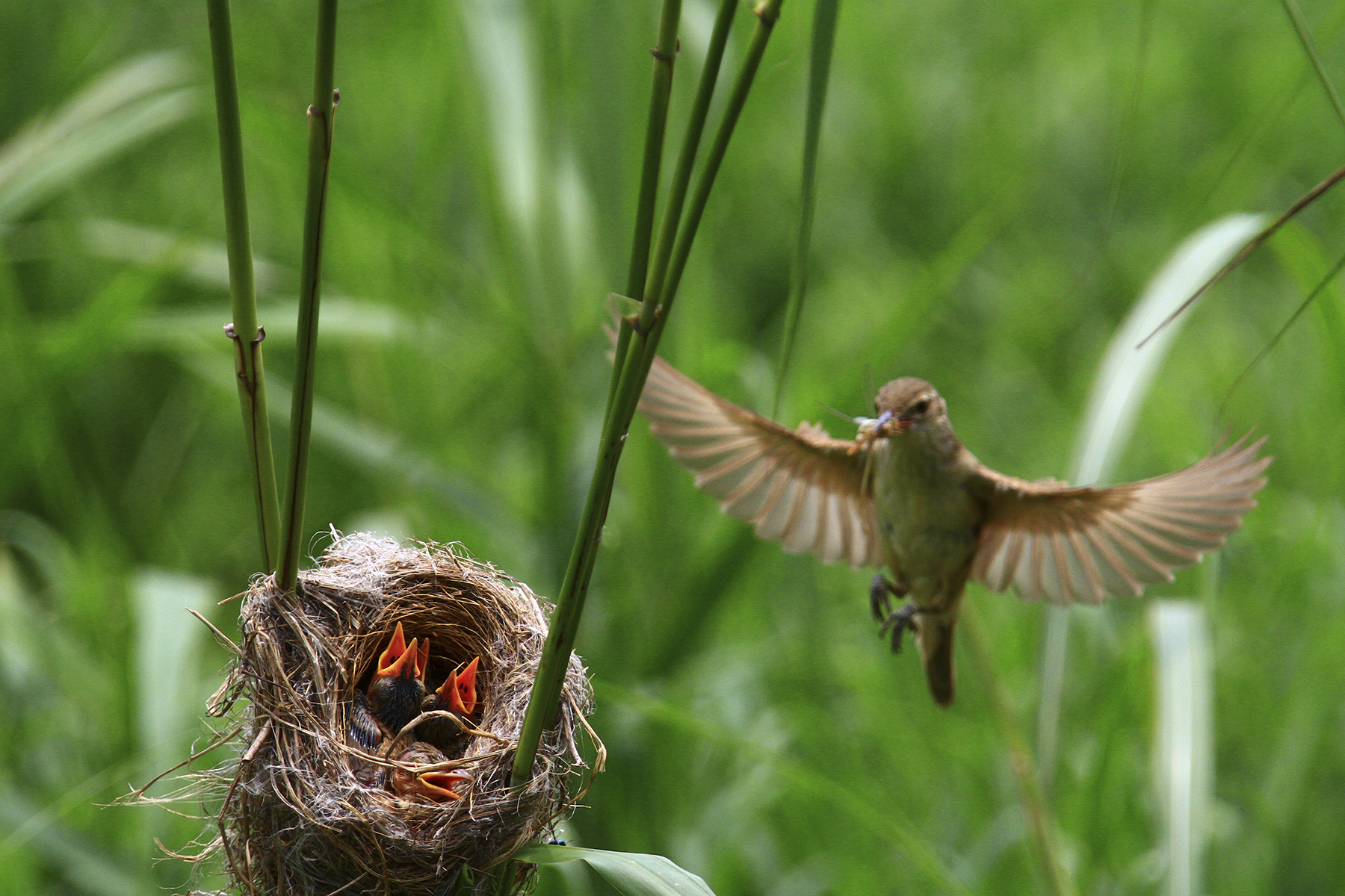 열정이 가득 담긴 개개비 가족`