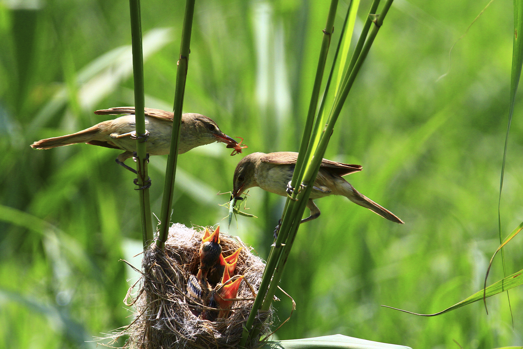 심혈을 기울여 담은 개개비 가족`