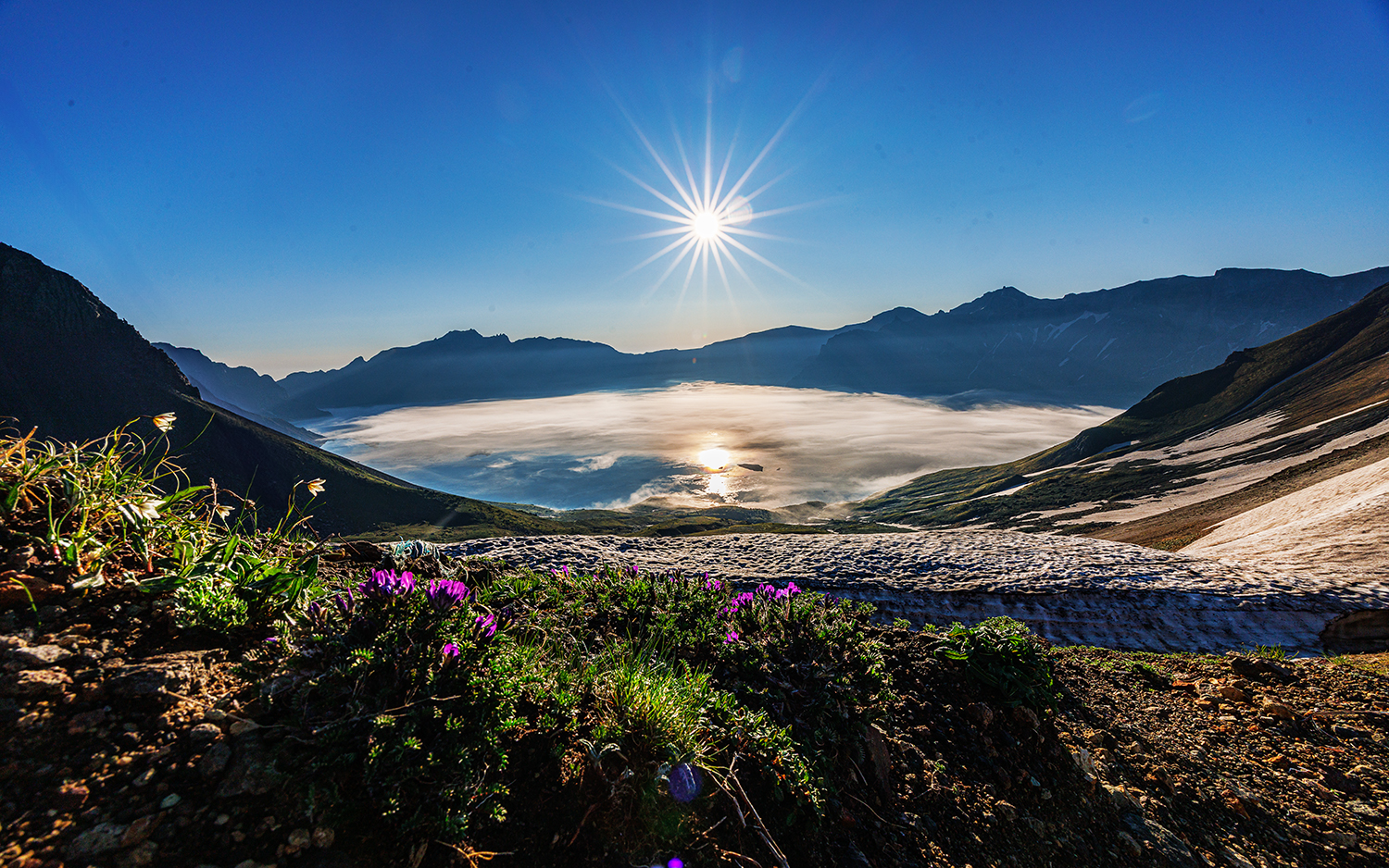 열정으로 담으신 백두산 호수에 안개 피던 날 작품에 잠시 머물다 갑니다..