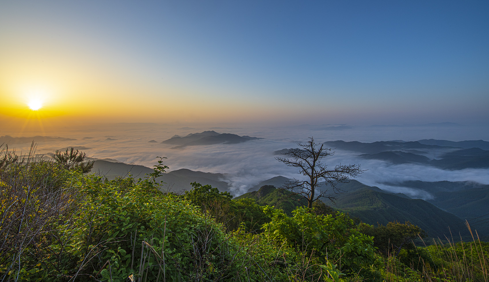산山 고사목 일출
