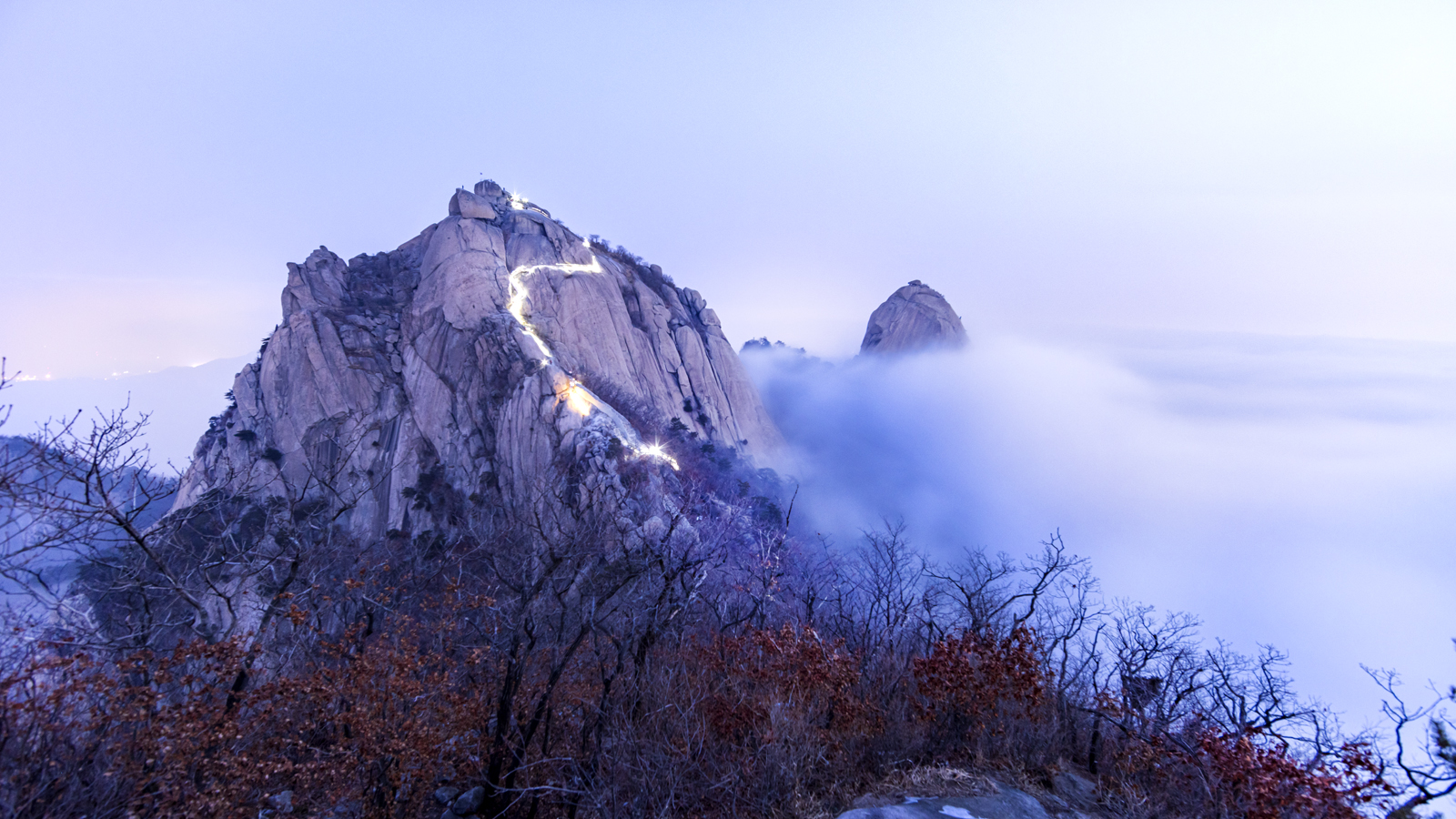 산山 백운대 오르는 산객들...