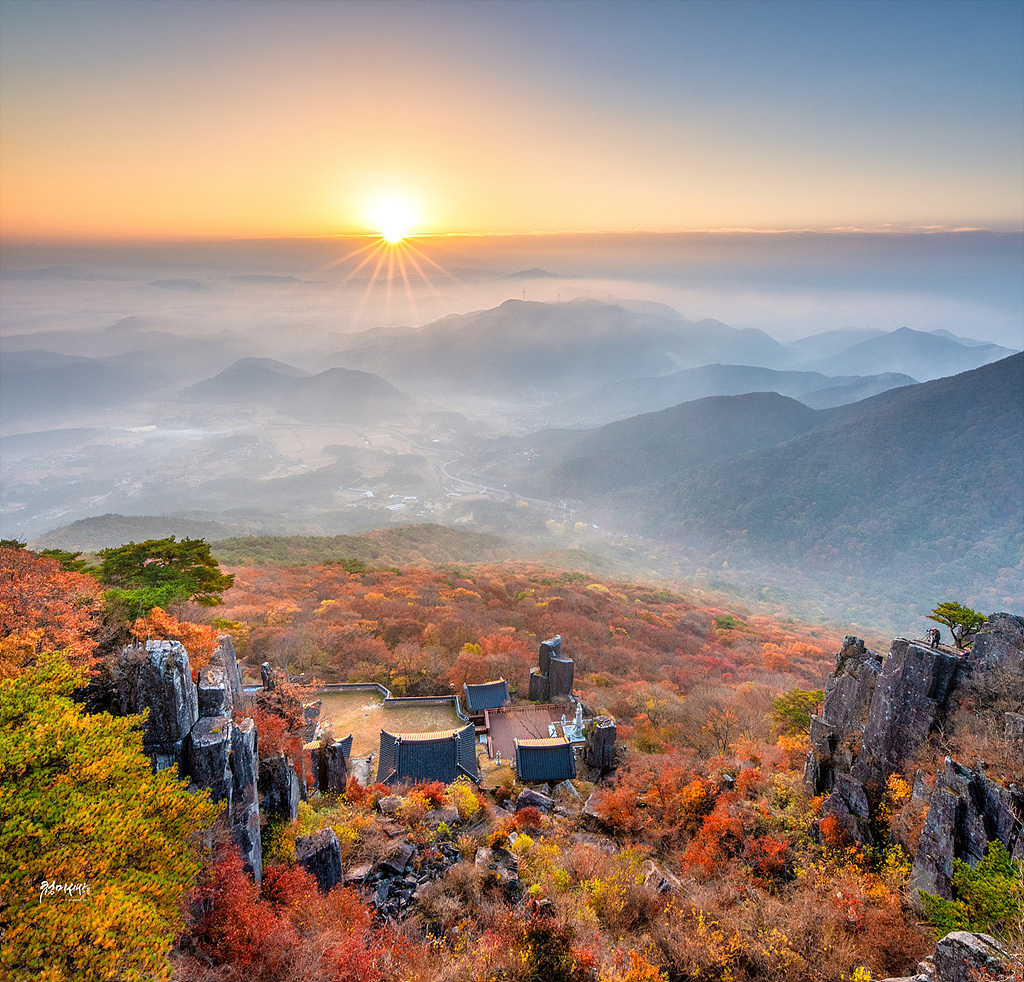 산山 가을빛 아침