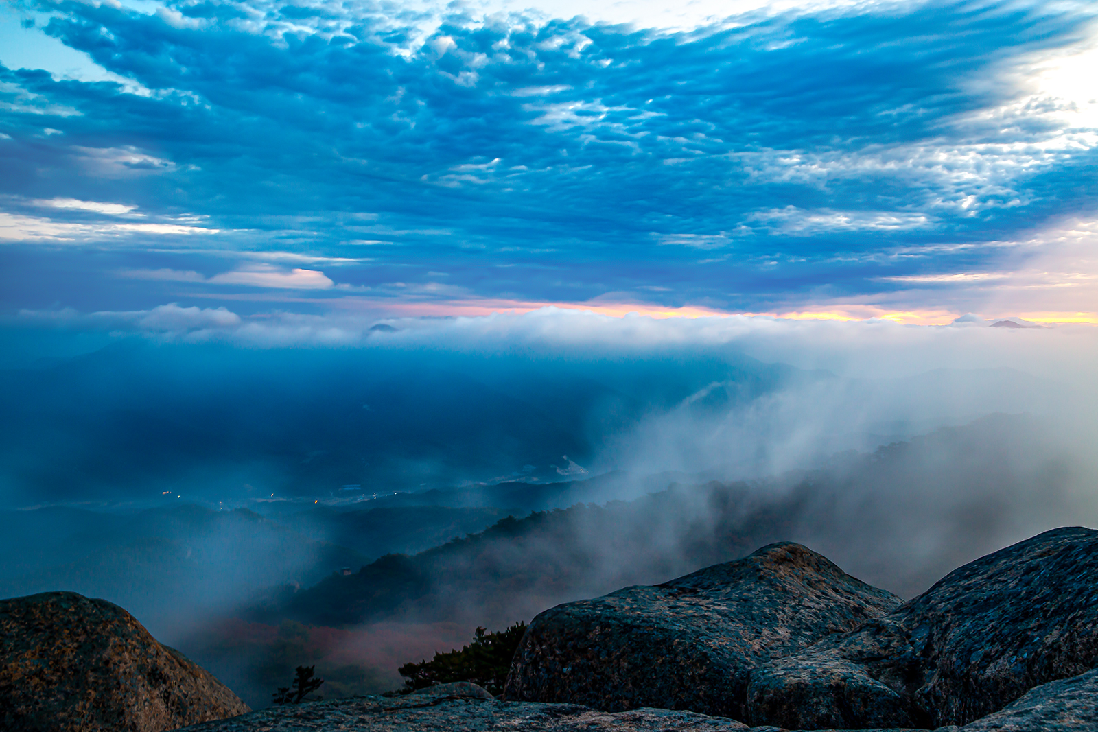 속리산 어느 능선에서 맞이한 새벽풍경.