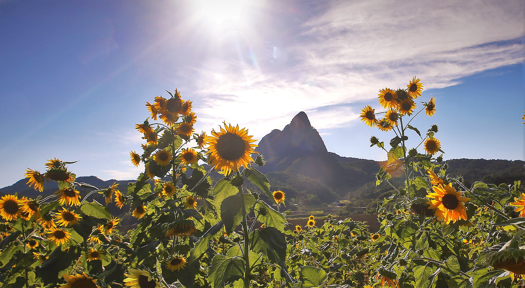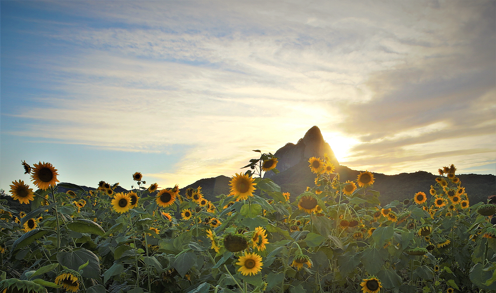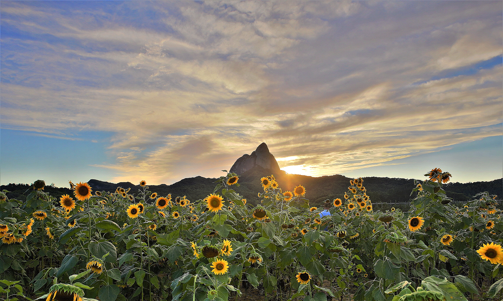 제목 제목:마이산이 보이는 해바라기 풍경