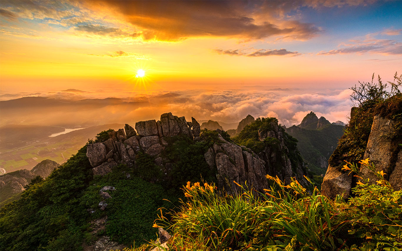 산山 원추리꽃이 있는 풍경