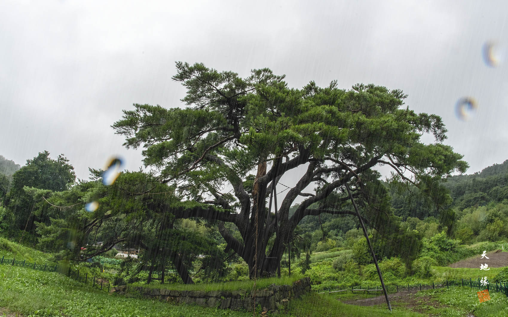 묘산에서 비가내려 렌즈에 물방울이 ---