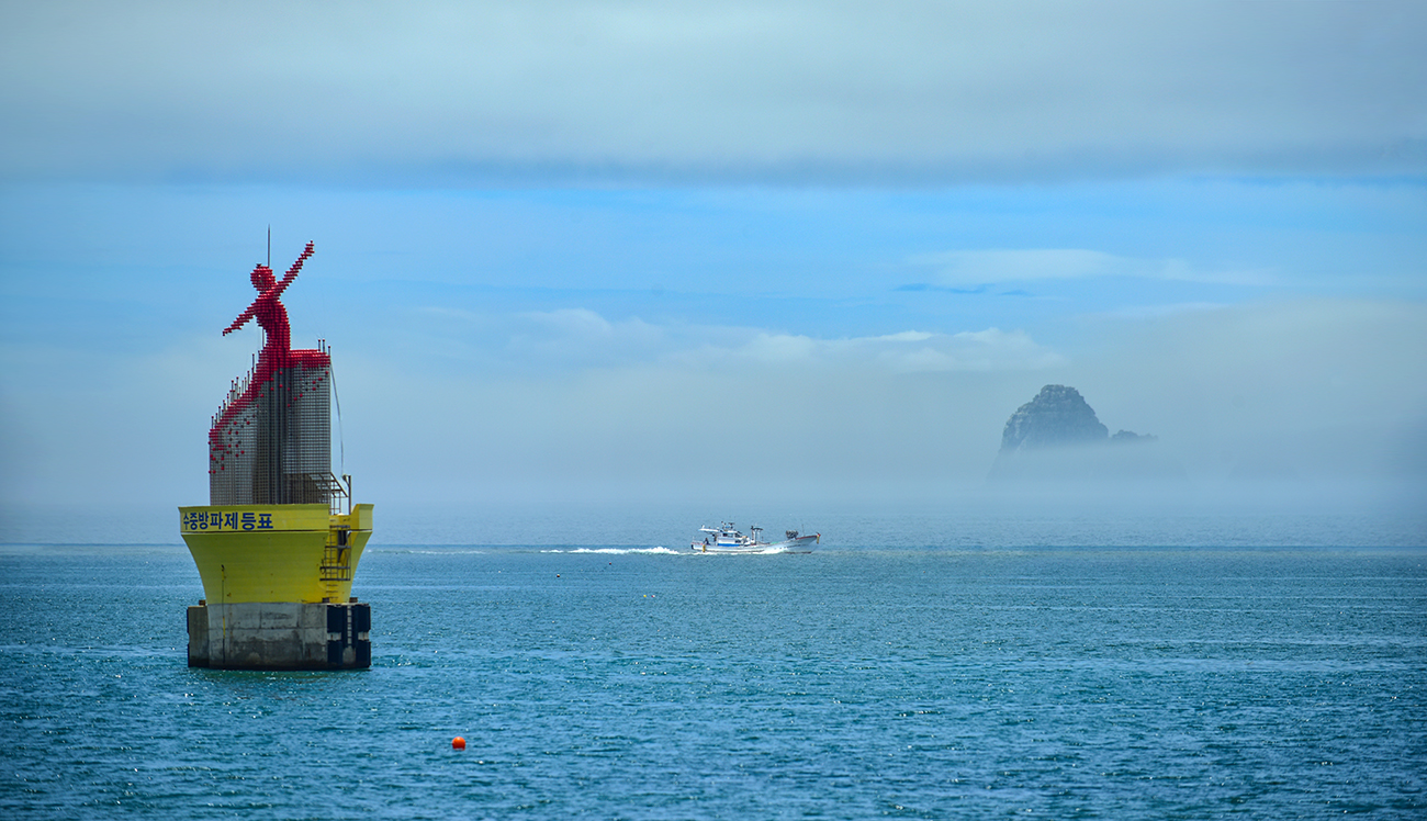 왼쪽 발레리나 수중방파제는 해무를 보고