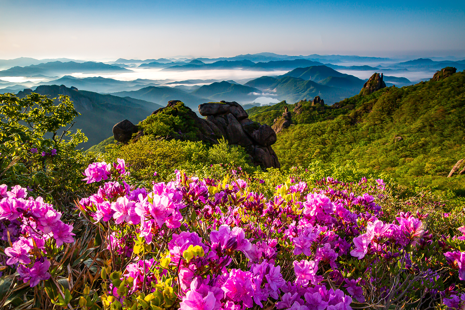 월출산 구정봉에 4일날 올라서 일몰을 보고 나 홀로 자고서 맞이한 아침풍경