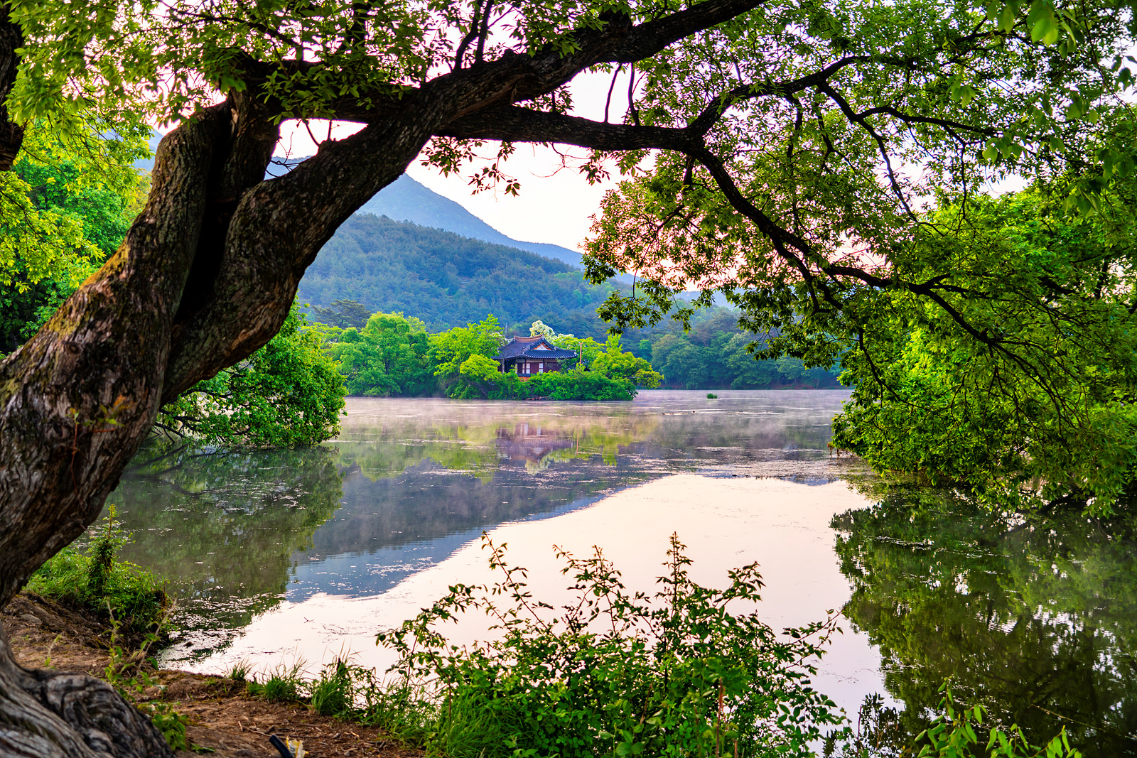 심혈을 기울여 담은 호수의 봄 풍경