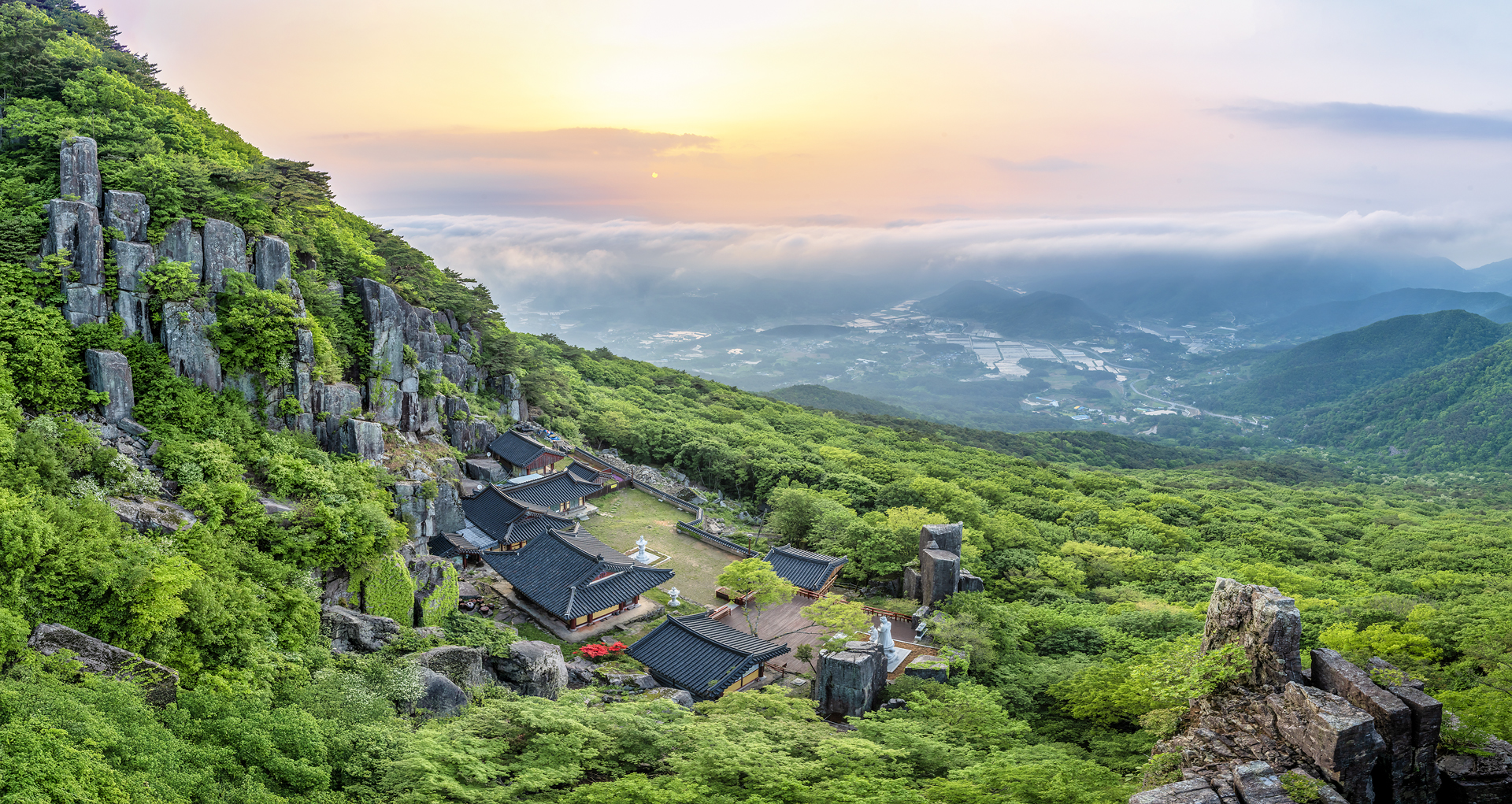 환상적인 운해와 연두 빛 산하의 푸르름이 너무 좋습니다.