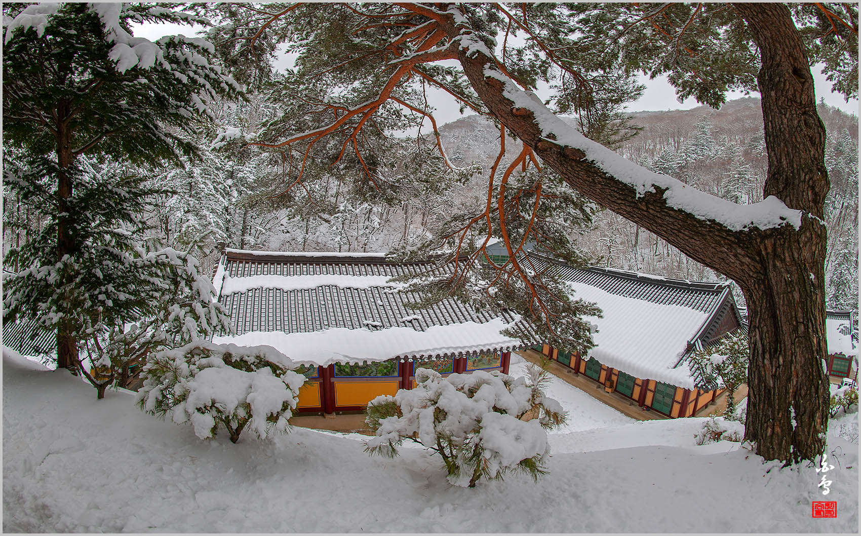 작가의 시선 춘설내린 정암사 작품 좋은 느낌 감상 합니다