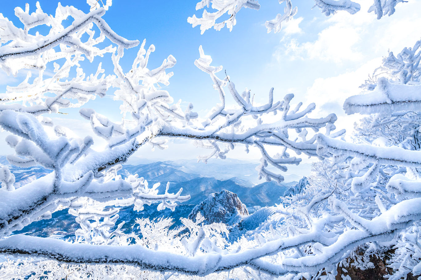 산山 겨울나무 사이로