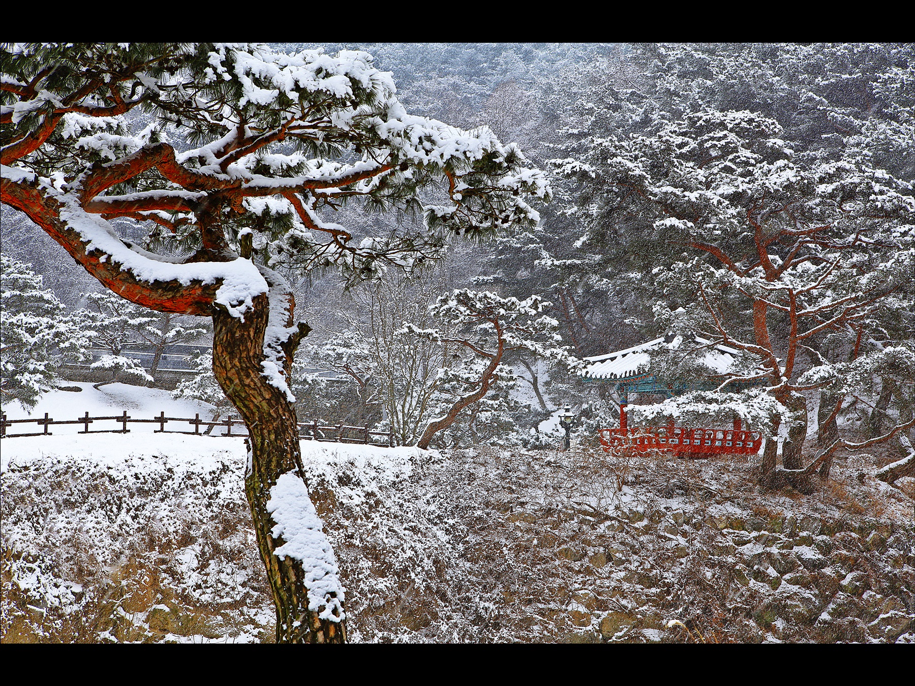눈이 온 풍경이 아름답습니다.