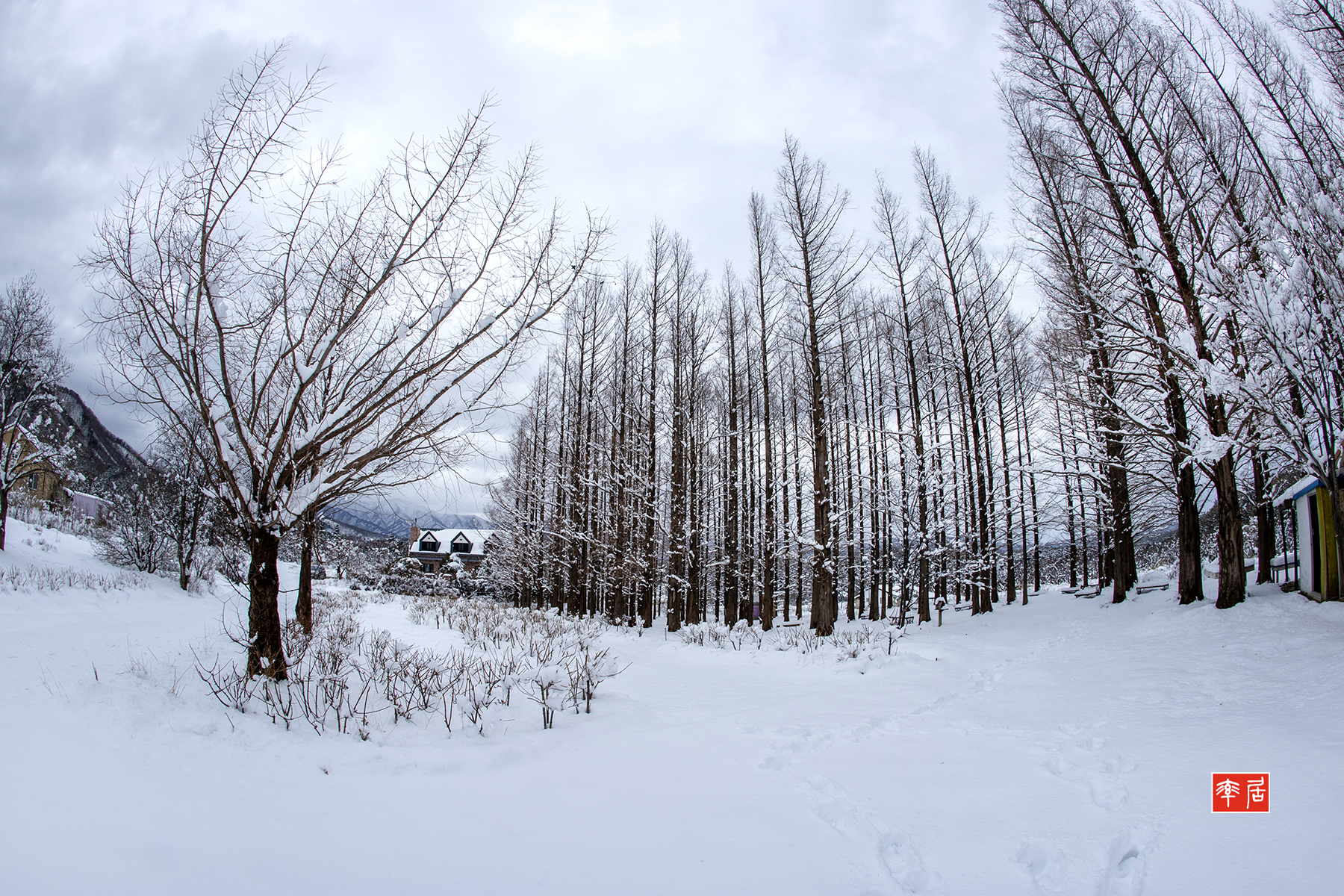눈이 온 라벤다 정원