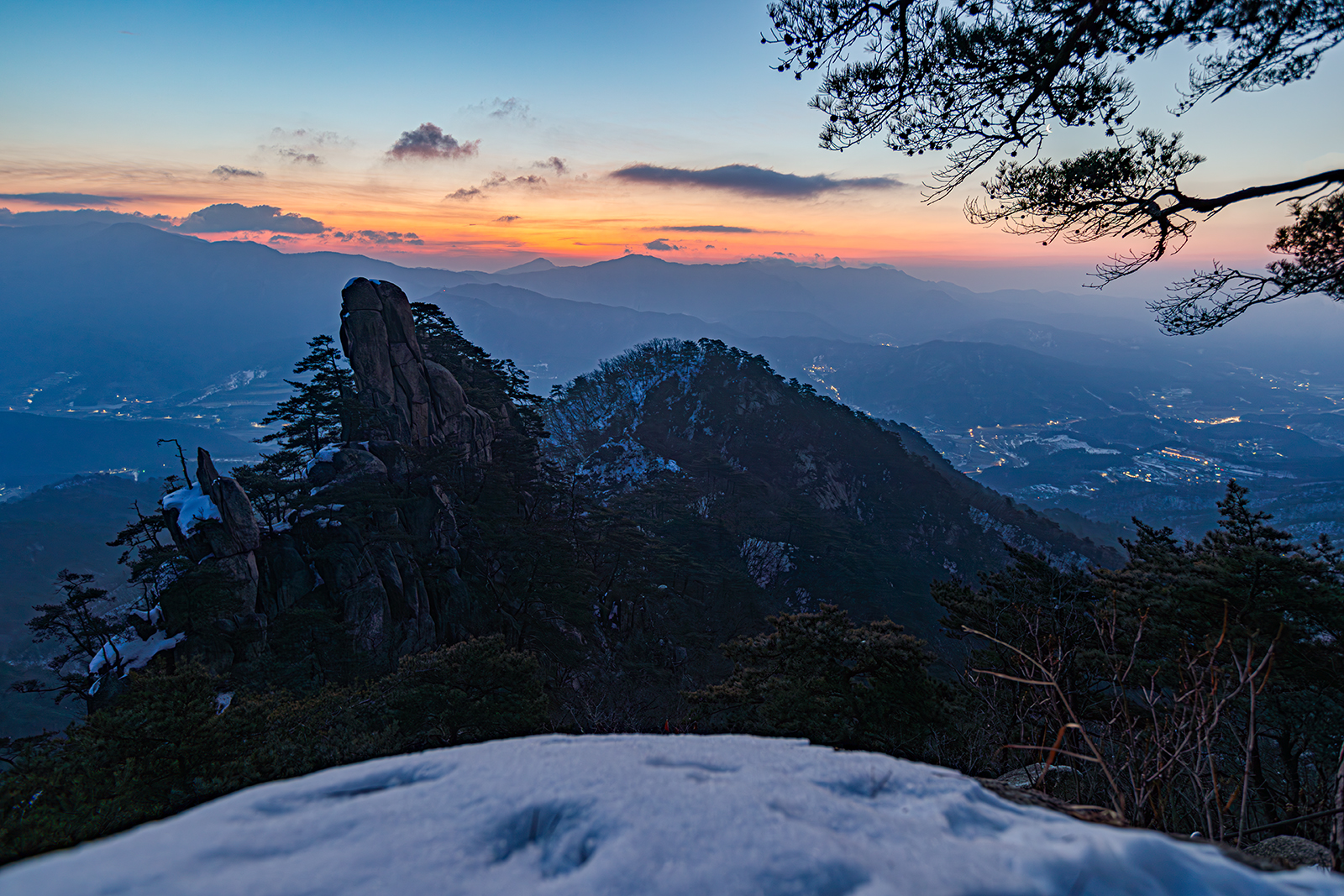 겨울의 잔설이 남아 있는 운악산의 새벽