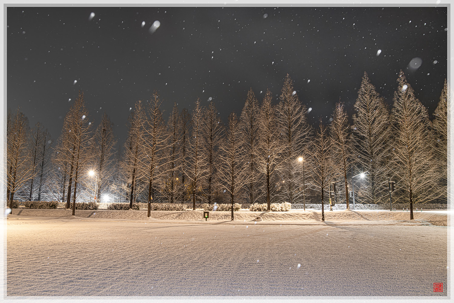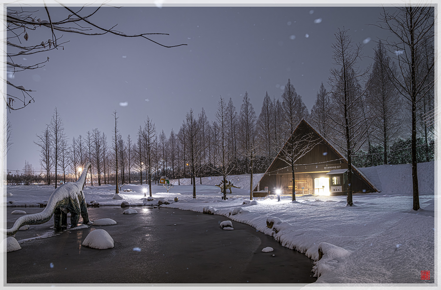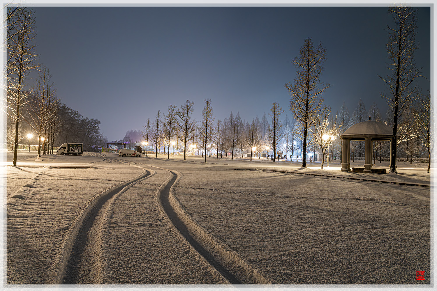 눈이 온 풍경이 아름답습니다.