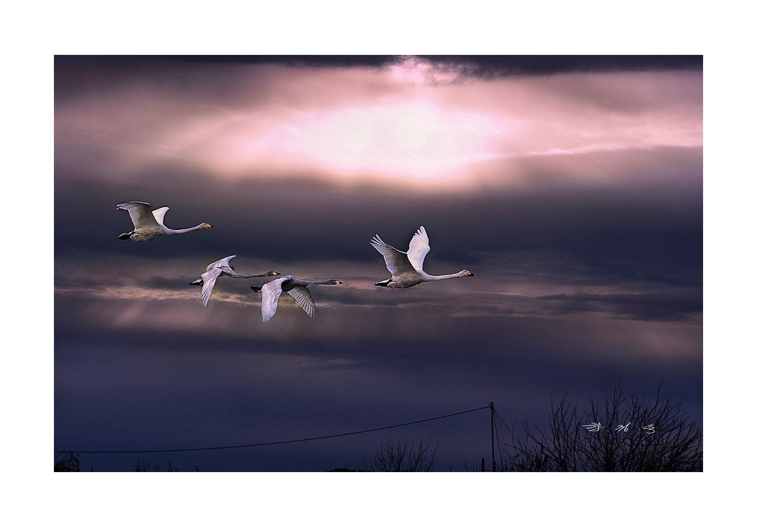 멋있는 고니 날다작품