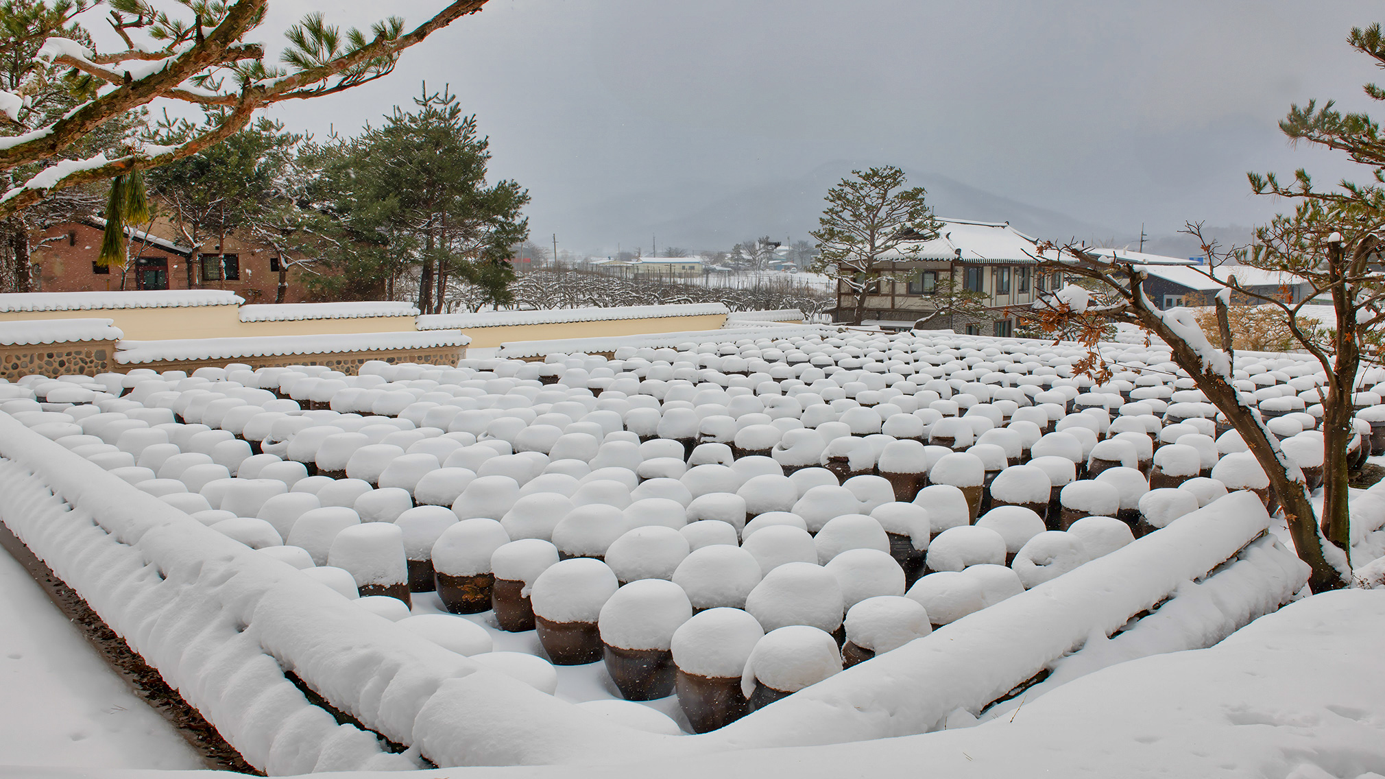 심혈을 기울여 담은 눈 내린 장독대