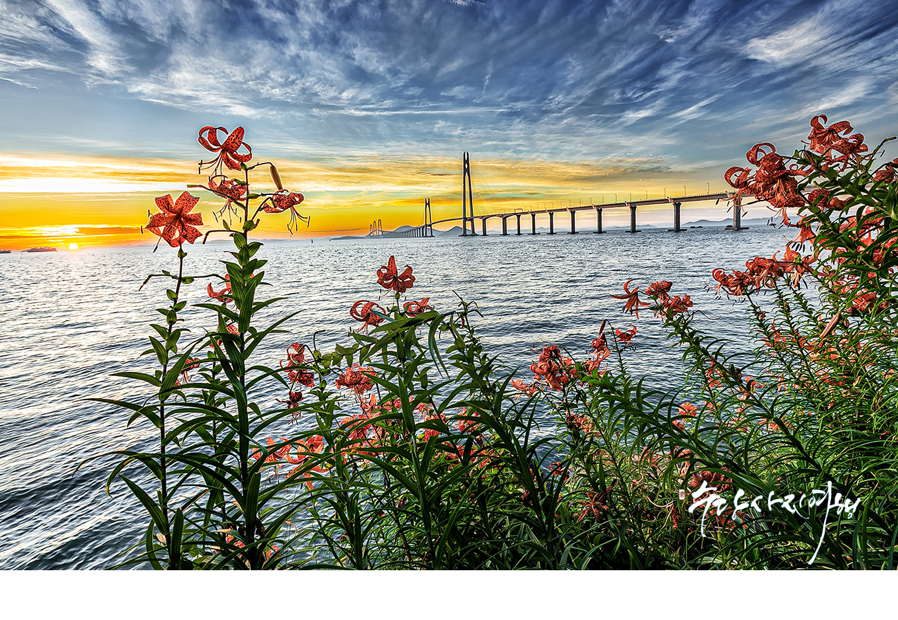 천사대교의 꽃피는 일출작품이 멋집니다