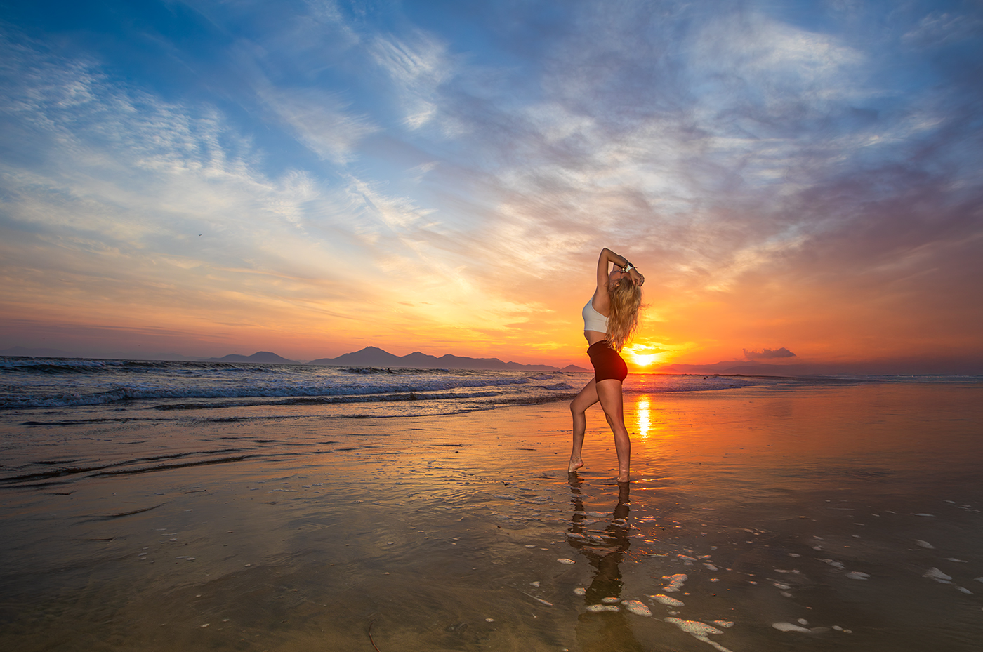 님의 노을지는 해변에서