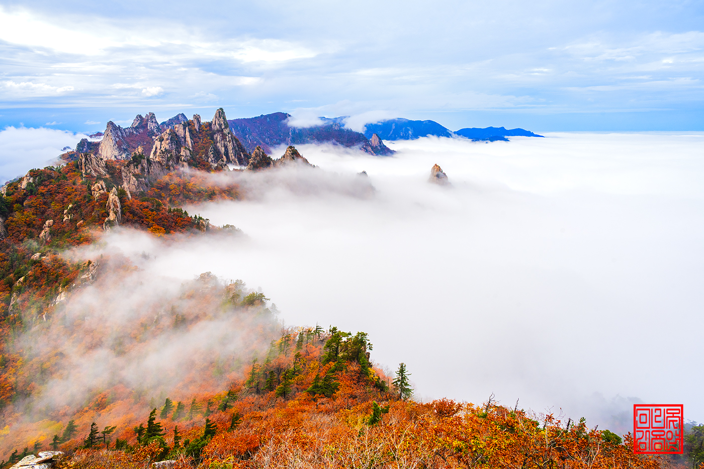정성이 깃든 아름답고 멋진 시선 만추의 공룡능선 운해경작품